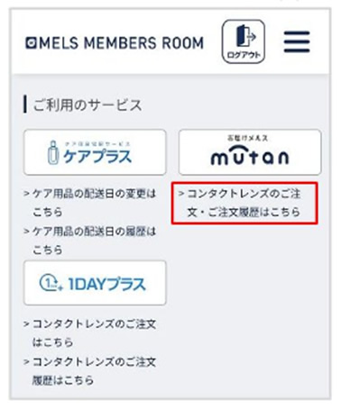 - 「コンタクトレンズのご注文・ご注文履歴はこちら」をクリック